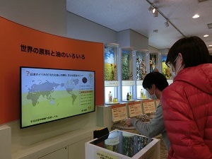 日清オイリオの歴史や事業内容の説明を受けた後、製造ラインや原料が運ばれてくる港、展示ルームの見学などを行いました。また、技術開発センターでは、製品開発の様子を見学することが出来ました。