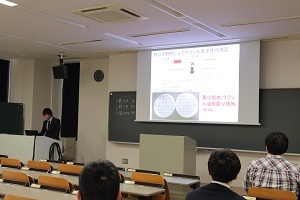 卒業研究発表会は、4年生が行った卒業研究の成果をプレゼンテーションする場です。今年度は8つの研究室から計52題の発表がありました。教員や院生、4年生だけでなく、2~3年生も参加して活発な議論が交わされ、有意義な時間となりました。
