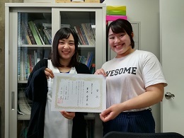 2018年5月26日(土)~5月27日(日)に宮崎で開催された第20回マリンバイオテクノロジー学会で、理工学部生命学系の藻類代謝生理学研究室に所属する栗木愛菜さん(4年)、大島萌さん(4年)が「重イオンビーム照射による高オイル産生藻創出」で優秀ポスター賞を受賞しました。