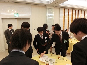 フレッシャーズ・ミーティングは新入生にご家族を交えて、大学やコースの特徴などについて説明を行う会です。また新入生同士の友達作りの場でもあり、フレッシャーズ・セミナ(*)の担当教員との顔合わせの場でもあります。学生会や大学院生の先輩たちも新入生の相談にのってくれたり、毎年恒例の自己紹介のコーナー等もあり、楽しいひと時を過ごすことができました。