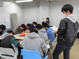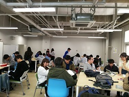 学生会スタッフ約15名ほどが新入生の各グループごとに、個々で単位の取り方や、必修科目について丁寧に説明させていただきました。履修科目についてだけではなく、経験してきた学生生活の話をまじえながら楽しく歓談し、非常に充実した履修相談会になったのではないかと思います。