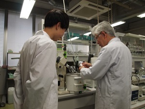 清水研究室は真菌(カビ、酵母、キノコ)を扱う真菌学研究室です。酵母やカビが産生する酵素や毒素などの分析、病気の原因となる菌(日和見感染菌)も扱っており、どのように人体に病気を引き起こしているのかなどの病原性の解明も行っています。また、キノコがゴムを分解して、生きるためにどのように利用しているのかなども研究しています。私はその中でも、酵母が産生する消化酵素の1つであるリパーゼについて研究をしています。リパーゼは脂質分解酵素なのですが脂質の分解だけでなく、脂質の合成や、脂肪を構成する脂肪酸の転移にもかかわる酵素です。リパーゼは、食品加工や医療、環境浄化など様々な産業で利用されていて利用目的に適したリパーゼの発見が期待されています。現在は、利尻島で分離した新種の酵母菌が産生する新規の低温活性リパーゼの精製と、アミノ酸配列決定を目標として実験を行っています。