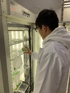 私たちの研究室では、遺伝学や分子生物学の知見を用い、植物や酵母、大腸菌を材料として、植物に有用な効果をもたらす遺伝子、または化合物を探索しています。私の研究では、植物の重力屈性を阻害する化合物について、解析を行っています。重力屈性は植物の根が地面の中に伸長したり、弦巻植物のツルが巻き付いたりするのに、必要なメカニズムです。したがって、これを阻害すると根が土に定着しにくくなったり、ツルが巻き付かなくなったりすると考えられます。この効果を応用すれば、雑草の生育や、弦巻植物の巻き付きを制御することができるようになるかもしれません。今行っている研究が、将来人々の暮らしをより豊かにできると信じて、日々楽しく研究しています。
